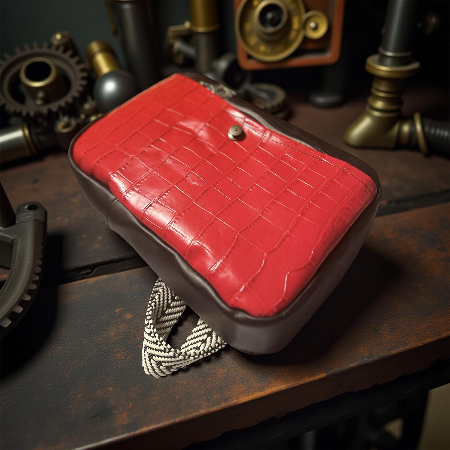 The waxed canvas material provides a water-resistant and rugged exterior, making it perfect for outdoor adventures or daily use. The exotic elephant leather adds a unique and sophisticated touch, making this bag a statement piece.